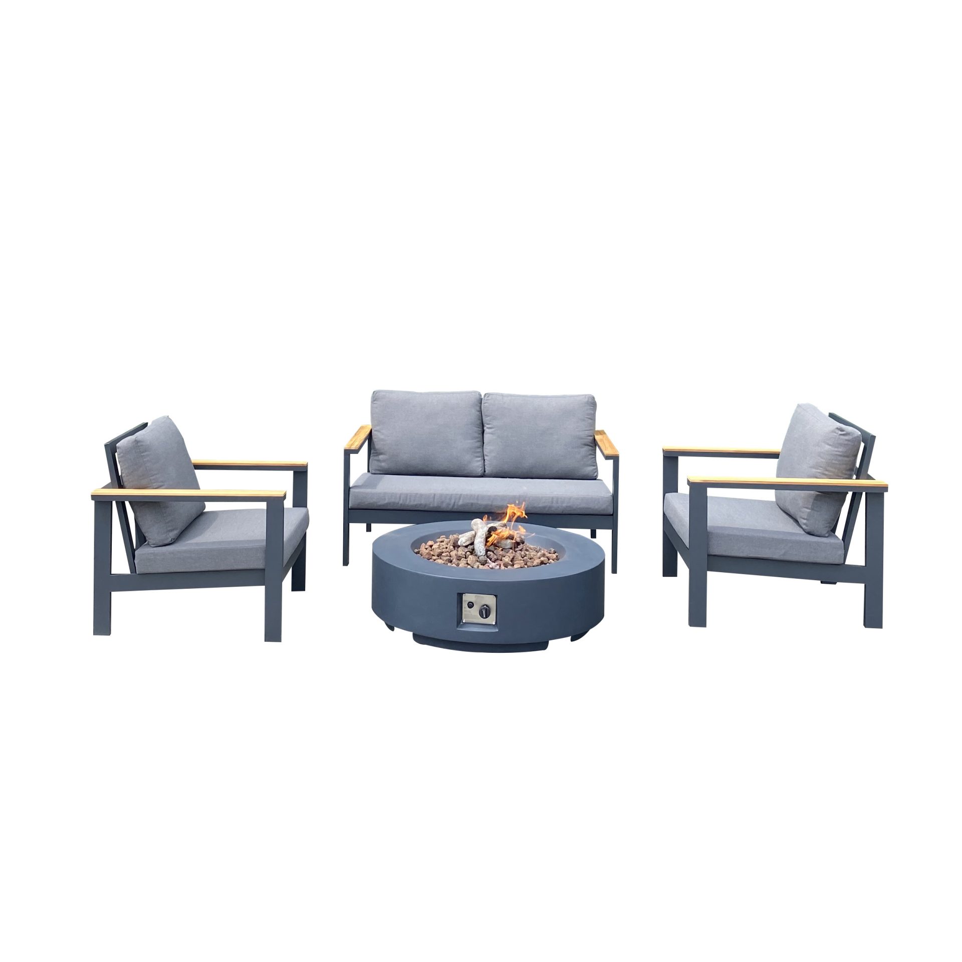 Material: GFRC Dimension: 40 inches Ignition: Electric igniton Heat rating: 55000BTU Certification:CSA and CE certification. Color: Grey